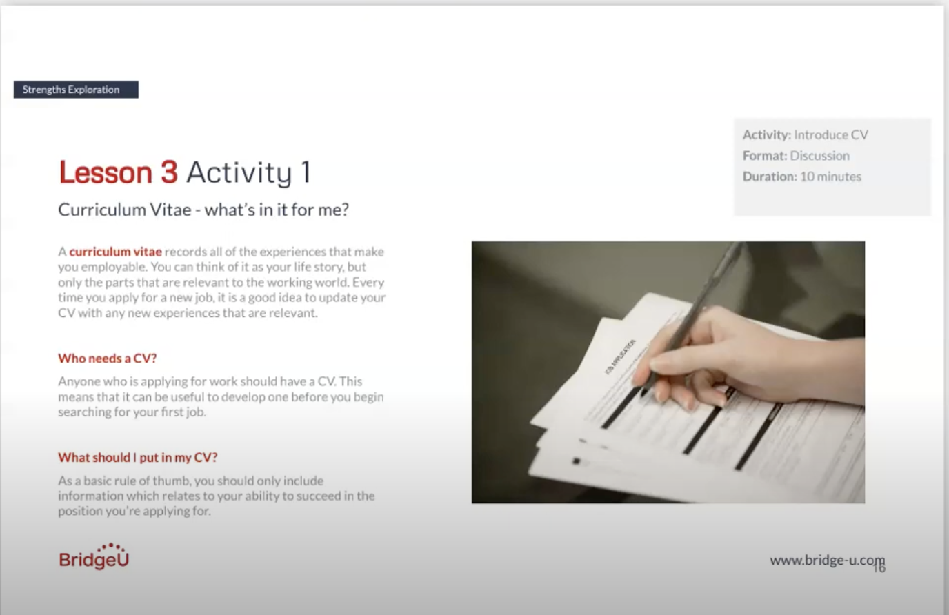 A very important part of the application process is linking CommonApp accounts to BridgeU so that I am able to submit documents for applications. I am not always able to be in every advisory at once, so utilizing videos has been tremendously helpful.